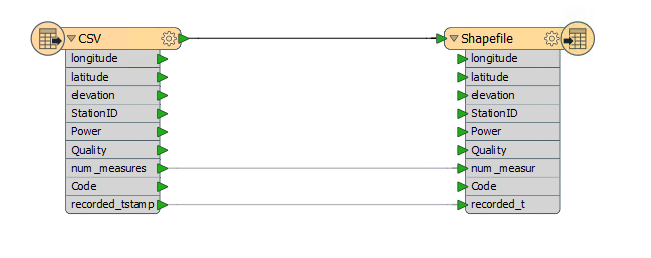 This is a very simple workspace that reads a CSV File and produces a Shapefile.