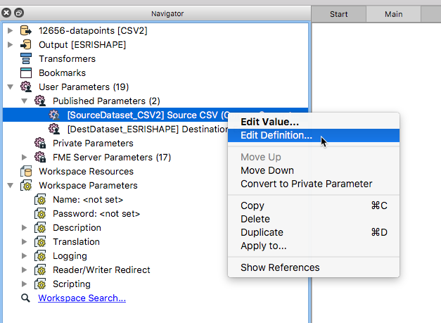 | Data | C:\FMEData2018\Resources\RESTAPI\Chapter4Exercise7\12656-datapoints.csv |