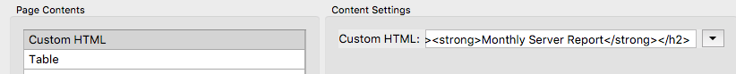 Under the Page Contents, add Custom HTML to the HTMLReportGenerator.