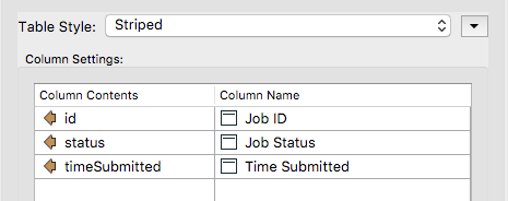 Next, under page contents, add a Table. Specify the column contents and headings the table will use.