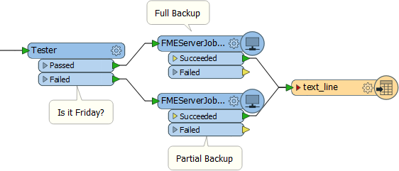 Interestingly, for either method, the initial/control workspace can be run on either FME Desktop (e.g. Workbench) or FME Server. The FMEServerJobSubmitter works on both platforms.